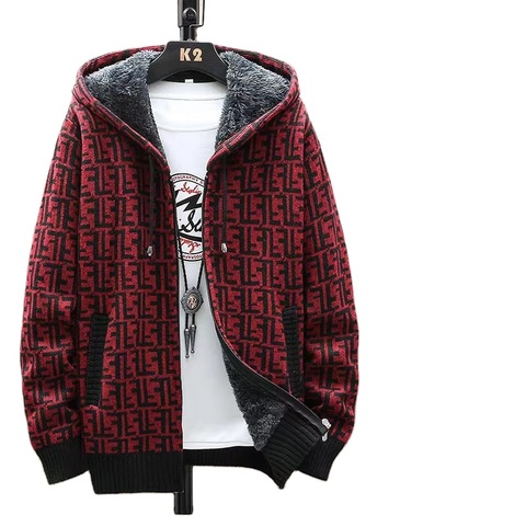 Huachao ropa caliente casual Cuello medio cremallera engrosamiento hombre suéter Kint costura cárdigan mantener caliente hombre suéter