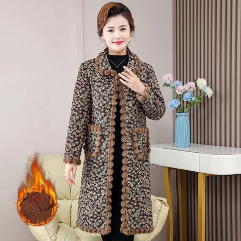 Huachao Winter Keep Warm Middle Age Knit Sweater Fleece Bordado Cardigan Knit Women Sweater