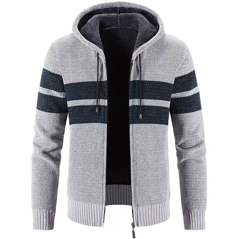 Huachao, gran oferta, ropa de hombre con cremallera, suéter de manga larga de punto a rayas, Sudadera con capucha, suéter de hombre Jacquard
