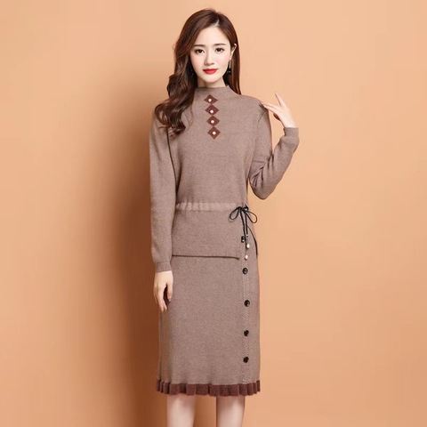 हुएजो हॉट कारण महिला सोइल्ड स्वेटर घुटने के गोल गर्दन के स्लिम फिट महिला स्वेटर पोशाक