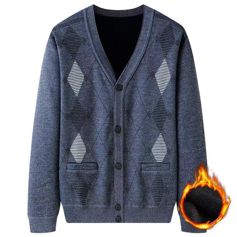 Huachao Keep Warm Winter Man Sweater V Neck Cardigan Solid Patchwork Pullover Sweater para hombre
