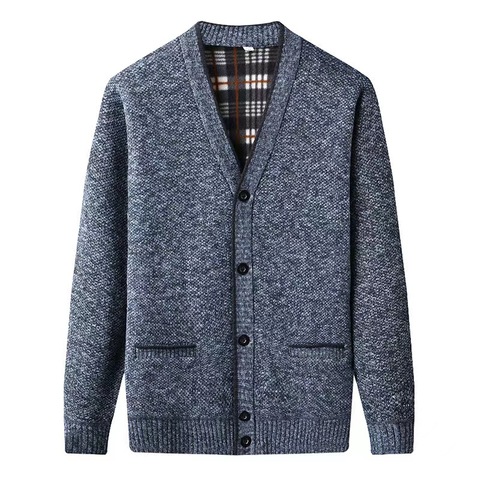 Suéter de moda Huachao, cárdigan de manga larga con botones, tejido grueso con cuello en V para invierno, suéter de punto sólido para hombre